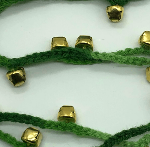 80 inches long , with gold-toned bells (that make a lovely sound) every 2 inches.